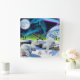 Reloj Cuadrado Polar Bear Cubs & Aurora Earth Day Clock