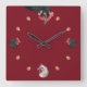 Un reloj frívolo para los aficionados a las aves de corral con cuatro retratos de pollo - dos cabezas de gallina negras a juego a izquierda y derecha, una gallina negra más grande mirando hacia abajo desde arriba y una gallina blanca con subsexo al fondo. Las horas intermedias son huevos pequeños. Un poco de humor para la cocina :) Esta versión tiene un fondo rojo marrón oscuro que se puede cambiar usando el botón personalizar y luego editar.