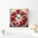 wall clock with floral design, wreath of poppy flowers, red color tones, wall clock,