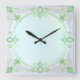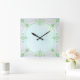 This clock features somewhat retro-looking designs in different shades of green. It's subtle and adds a nice touch to any room.