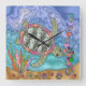 Reloj Cuadrado Psicodelia Mar Turtle Seahorse Art
