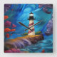 Hermoso faro de rayas rojas y blancas sobre un rocoso en el exterior rodeado de flores y agua azul/cielo Arte de IA creado por minx267