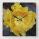 Reloj Cuadrado Púrpura Pear Cactus con Flor Amarilla