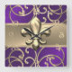 Reloj Cuadrado Púrpura y dorada Filigree Swirls Fleur de Lis