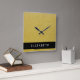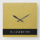 Reloj Cuadrado Purpurina de oro, fondo Purpurina, nombre