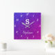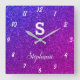 Reloj Cuadrado Purpurina Monogramas Púrpura Elegante Favor de Reg