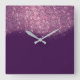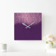 Reloj Cuadrado Purpurina violeta púrpura Confetti Rosa Glam