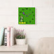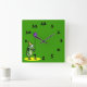 Rana verde divertida del dibujo animado con los puntos en su vientre. ¡Llevando un gorra amarillo del fiesta con los puntos y la borla rosados y sosteniendo un globo púrpura, él está listo por un buen tiempo del hoppin en una fiesta de cumpleaños impresionante del sapo-aliado! Arte digital original del dibujo animado de Taylor Addams.
