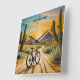 pintura al atardecer de una bicicleta en el desierto rodeada de cactus