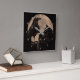 Un cuervo con dos gatos negros y una luna sepia, esta imagen tiene un toque mágico de brujería. Una divertida imagen de fantasía.