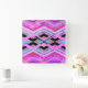 Reloj Cuadrado Rayas de cruce geométrico morado rosa y Aqua