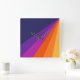 Ilustracion abstracto de rayas diagonales de estilo retro en color púrpura, azul, naranja y amarillo sobre fondo azul oscuro