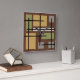 Este diseño moderno inspirado en la era atómica, de mediados de siglo, tiene líneas audaces y formas geométricas para seducir a todo aquel que ame el arte abstracto de los años 50. Los colores son naranja dorado, verde, azul turquesa, gris con un fondo marrón terrenal.