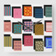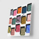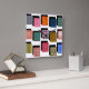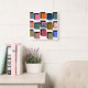 Este reloj tiene un diseño Bauhaus de rectángulos con diseños dentro y sus sombras detrás.