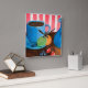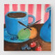 Turn every hour into a cheerful moment with “Refreshments,” now featured on this eye-catching square wall clock. This vibrant acrylic still life showcases a bright blue coffee cup, fresh fruit, and a classic milk jug set against playful pink and white stripes. The bold blues paired with warm wood tones create a cozy, welcoming kitchen atmosphere that feels both nostalgic and fresh.
