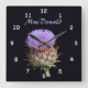 El cardo morado en flor se sitúa en el centro de los números blancos. El nombre en morado puede ser personalizado. Se puede cambiar el fondo negro. Ideal para la familia con ascendencia escocesa.