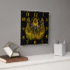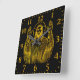 Esta obra de arte muestra una representación dorada de Jesús con manos extendidas, simbolizando la paz y la bendición. La figura radiante se resalta en un contexto simple, enfatizando el mensaje espiritual transmitido por el gesto.
