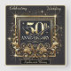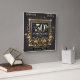 Celebra 50 años de amor y devoción con este diseño impresionante. Un rico fondo negro prepara el escenario para un marco dorado ornamentado, adornado con florituras intrincadas que irradian elegancia. El texto en negrita "50 Aniversario" brilla en el centro en oro lujoso, complementado con acentos brillantes y explosiones de estrellas delicadas para un ambiente festivo. Perfecto para honrar un hito atemporal con sofisticación y belleza.
