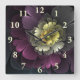 Reloj Cuadrado Resumen de la flor fractal gris purpur moderna