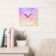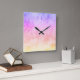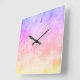 Reloj Cuadrado Resumen de nubes de arcoiris con acuarela líquida