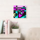 Reloj Cuadrado Resumen Surfing Turquoise Hot Pink Yellow Black
