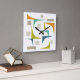 Añade un toque de color a tu pared con este divertido reloj moderno de mediados de siglo. Los colores vivos y llamativos de las formas geométricas turquesa, azul, verde oliva, naranja y marrón.