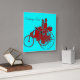 Auto Benz de tres ruedas, 1886. Elegante, clásico y artístico diseño automotriz re-elaborado a partir de vintage en vivos colores azul acuático, rojo verde azulado.