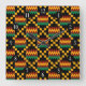 Reloj cuadrado con un patrón de tela Kente amarillo, verde, rojo y negro con números blancos. Este es un diseño de arte africano encontrado en Ghana. ¡Personalizable. El reloj perfecto para recordarte el espíritu de Kwanzaa durante todo el año.