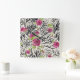 Reloj Cuadrado Rosas Sobre Patrón Animal