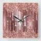 Reloj Cuadrado Rose Gold Glitter Drips Monogram Personalized