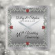 Esta elegancia ostentosa enmarca este 40 aniversario boda en un diseño único de diamante de vieiras con rombo de lágrima central con acentos de rubí en forma de corazón y chispas falsas añadidas en un gradiente de tono plateado. Por favor, tenga en cuenta que todos los adornos están impresos y solamente están hechos para aparecer lo más reales posible en un diseño plano e impreso. Esto incluye cualquier gradiente metálico y/o gemas. Diseño original de Holiday Hearts Designs (derechos reservados). Si tiene alguna pregunta o necesita ayuda con el diseño, por favor envíenos un mensaje o envíenos un correo electrónico directamente a info@holidayheartsdesigns.com, y nos complacerá asistirle siempre que sea posible. Para preguntas sobre producción, envío y entrega, póngase en contacto directamente con el Servicio al cliente de Zazzle. Holiday Hearts Designs es un estudio de diseño profesional con más de 10 años de experiencia en Zazzle con muchas reseñas de clientes satisfechas, por lo que cuando compra con nosotros, puede estar seguro de que se ha prestado la máxima atención a cada detalle para crear la calidad profesional que nuestros clientes esperan.