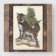 This rustic print illustrates a fox in front of a pine tree. The colors are in the soft pastel range and the framing of the picture has traditional motives in the brown gama. This designs would be a perfect addition to your country house decoration.