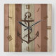 Reloj Cuadrado Rústico Tono Tierra Madera Estripas Náuticas y Anc