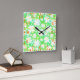 Celebrate St Patty's Day in style with this pretty, modern-looking shamrock pattern square clock design. The 4-leaf clovers are white with splashes of yellow and blue on a green background with a painted - slightly retro tiedyed - look. The clock numbers are orange with dots. Display this fun, lucky clock for Saint Patrick's Day or all year if you love clovers.