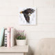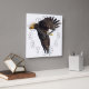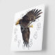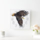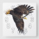 Un bello águila calva extiende sus alas hacia delante justo después de saltar de su percha sobre una extremidad de árbol