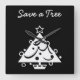 Reloj Cuadrado Save a Tree Christmas Tree Star Black and White