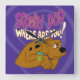 Echa un vistazo a Scooby-Doo asustado y cubriendo su cabeza con una pata, con un ojo abierto.