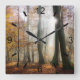 Una foto humorística de las vigas de sol en un bosque místico y encantado de hayas fue rociada con bruma, luz de la mañana dorada en otoño en el mágico bosque del pintoresco parque natural Siebengebirge, Rhineland, Alemania, este reloj cuadrado de pared con placa dial es un regalo para los amantes de la naturaleza y los estados de ánimo naturales. Foto tomada por Katho Menden.