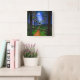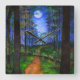 Reloj Cuadrado Sendero pintado de luna en acrílico de los bosques