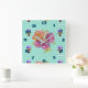 Reloj Cuadrado Shabby Chic Aqua Rosas Rosa Floral Habitación Turq