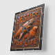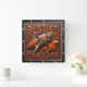 This highly dimensional square wall clock features a unique illustration of a brown shark with an open, toothy mouth and a happy brown seal swimming side-by-side. The entire design is rendered in rich brown and orange tones, strongly suggesting a deep carved relief or Engraved Wood Look. The shark has detailed gills and fins, while the seal appears cheerful with a smile. They are surrounded by an elaborate swirling, aquatic pattern carved into the dark wood background. The carving style gives the entire image a strong three-dimensional, sculpted quality. The large, three-dimensional embossed text "BESTIES FOR LIFE" is carved across the top and bottom of the artwork. The clock face features a simple clock face border with large, white, numbered tick marks (1 to 12) integrated into the outer frame. The artwork is surrounded by a thick, dark brown decorative border that resembles a black wood frame.
