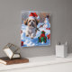Reloj Cuadrado Shih Tzu corre en Nieve con Gorra Navidad