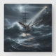 Reloj Cuadrado Ship in a storm guided by lighthouse -