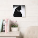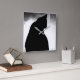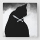 Silueta de gato negro Imagen de gato negro girando la cabeza a un lado. Fondo nebuloso ahumado.
