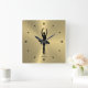 Reloj Cuadrado Silueta De Bailarina De Ballet Sobre Oro Metálico