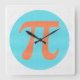 Reloj Cuadrado Símbolo de Math geek Pi, naranja y azul