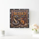 This dramatic square wall clock features a highly dimensional, close-up illustration of a coiled brown snake with an open mouth and an orange-brown rat standing side-by-side. The entire design is rendered in rich brown, orange, and dark gray tones, strongly suggesting a deep carved relief or Engraved Wood Look. The snake has detailed scales, and the rat has textured fur and prominent ears. They are positioned on a bed of rocks and boulders and framed by dark, gnarled tree roots and branches. The carving style gives the entire image a strong three-dimensional, sculpted quality. The large, three-dimensional embossed text "BESTIES for Life" is carved across the top, separated by a heart symbol. The clock face features a simple clock face border with large, white, numbered tick marks (1 to 12) integrated into the outer frame. The artwork is surrounded by a thick, dark brown decorative border that resembles a black wood frame.