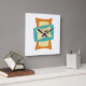 This funky mid century modern clock features squeezed and outstretched rectangle shapes In turquoise blue, cream, and orange. Starburst accents in pink, blue, gold, and black highlight the design. Fab!