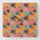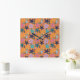 Reloj Cuadrado Starfishes coloridas con un fondo de color naranja