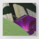 Square wall clock with a pink-purple Morning Glory wildflower under a leaf, while other leaves cast shadows on a gray wooden fence.